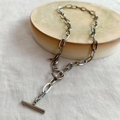 オーバルモチーフのリングが首元にエッジを効かせるネックレスです♪